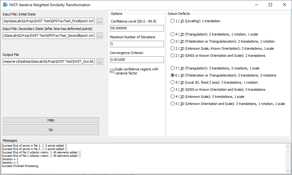 Note: if the adjustment will not converge, increase the convergence criterion and the maximum iterationsDatum Defects: Number of datum defects, and by effect the style of deformation that is being accounted for in the IWST adjustment.
