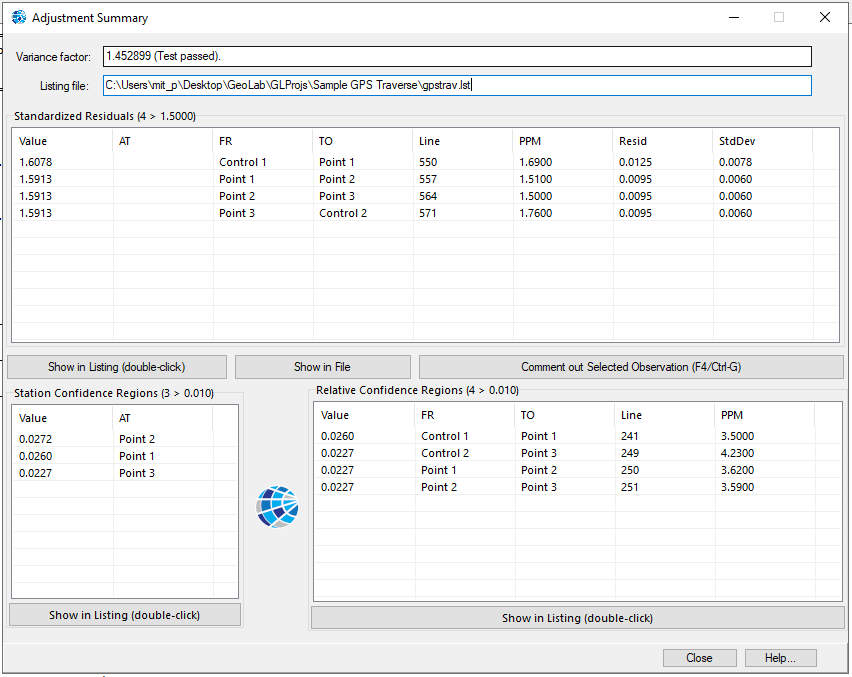 New option Options/General/Other/Overwrite Duplicate Stations will cause any station record encountered to overwrite a previous record. As GeoLab reads through the files in a network, if a station is encountered multiple times, the last instance encountered will be used in the adjustment (applies to station types ASTR, PL, PLH, PLO, NE, NEH, NEO, XY, XYZ)
